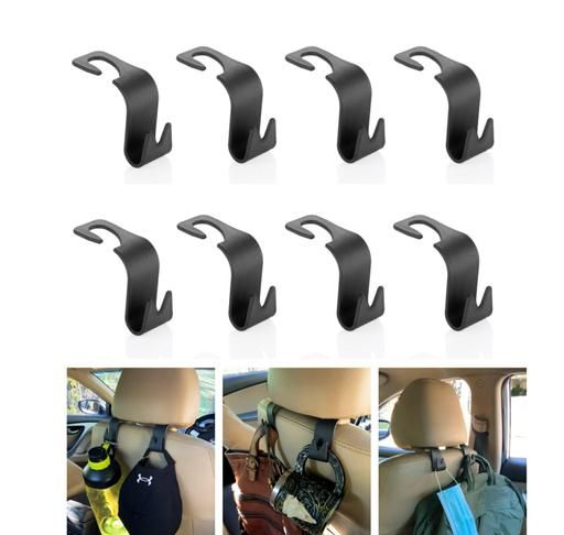 CLIMATE Car Backseat Head Rest Hook/Hanger, Plastic Hanging Storage Holder (BLACK)-Pack of 8.