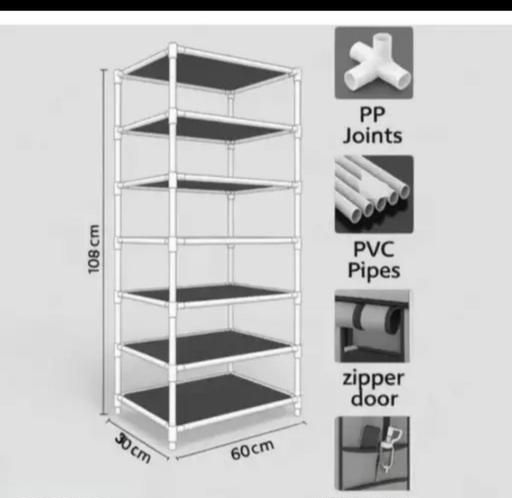 Name: Gr Store 6 layer blue print multicolor shoes rack plastic pipe side pocket premier quality zip door