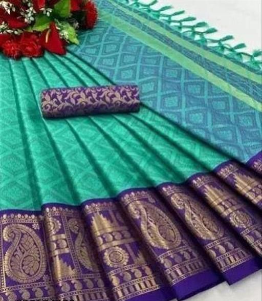 Design and Work: It features intricate woven patterns and a rich zari border with traditional motifs, including a jaal design. The golden zari work adds an opulent and grand touch.