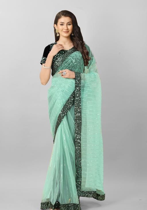 HEAVY NET SAREE AND VELVET BLOUSE WITH SEQUENCE