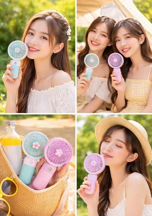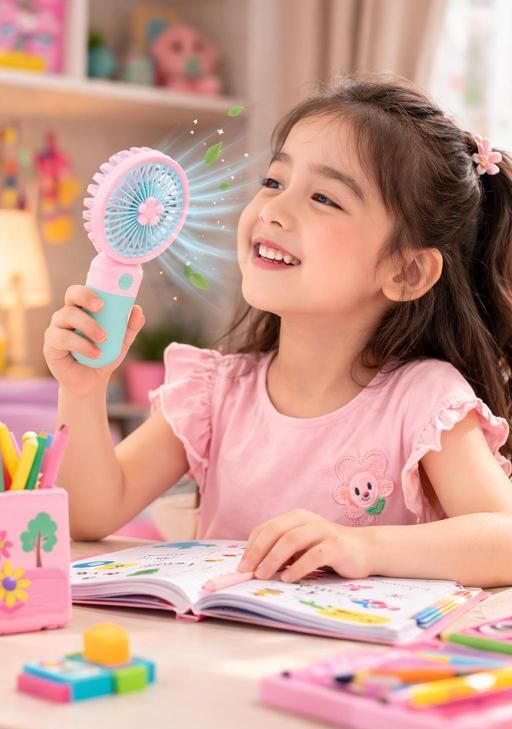 Name: PACK OF 2 Portable Cartoon Shaped Handheld USB Rechargeable Small Fan & Student Desktop Phone Holder (Pack Of 2)