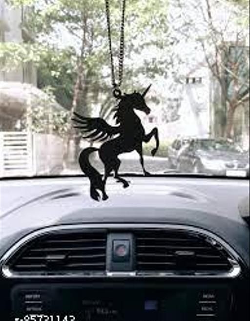 Name: Print Well Car Hanging Horse Unicorn Shape Decor Accessories and Wall Hanging Showpiece with Chain (Black)