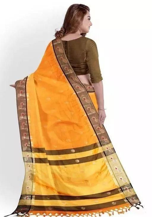Name: paithani silk gold Saree with blouse Saree Fabric: Silk Blouse: Separate Blouse Piece Blouse Fabric: Soft Silk Pattern: Zari Woven Blouse Pattern: Jacquard Net Quantity (N): Single FREYA FASHION Sizes: Free Size (Saree Length Size: 5.5 m, Blouse Length Size: 0.8 m) Country of Origin: India