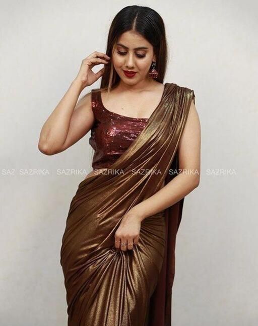Alluring Sarees , Solid Bollywood Saree ,Embellished Fashion Lycra Blend Saree ,