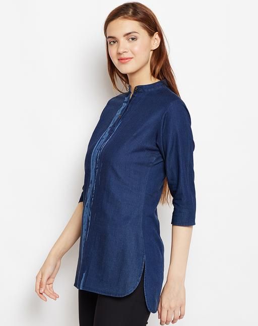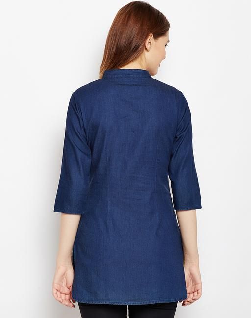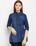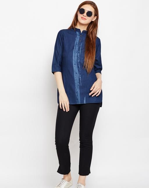 Name: Avyanna Stylis Women's Navy Blue Laser Printed Denim Tunic