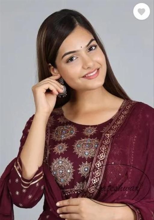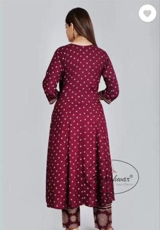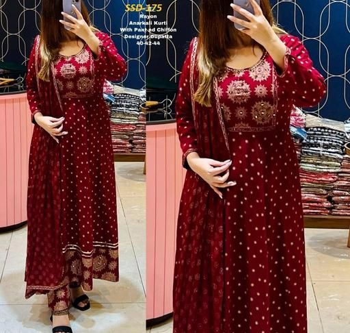 Name: Women's Rayon Printed Anarkali Kurta Pant & Dupatta Set (Maroon)