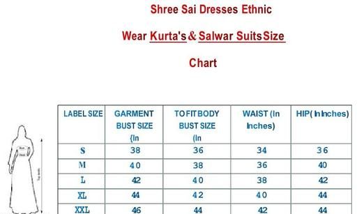 XL (Bust Size: 42 in, Top Length Size: 42 in, Bottom Waist Size: 34 in, Bottom Length Size: 38 in, Dupatta Length Size: 2.15 in, Shoulder Size: 18 in)
