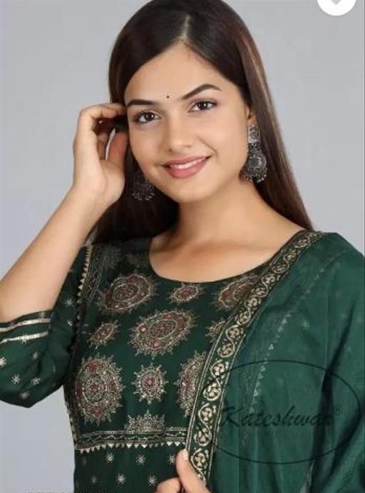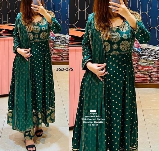 Name: Women's Rayon Printed Anarkali Kurta Pant & Dupatta Set (Green)