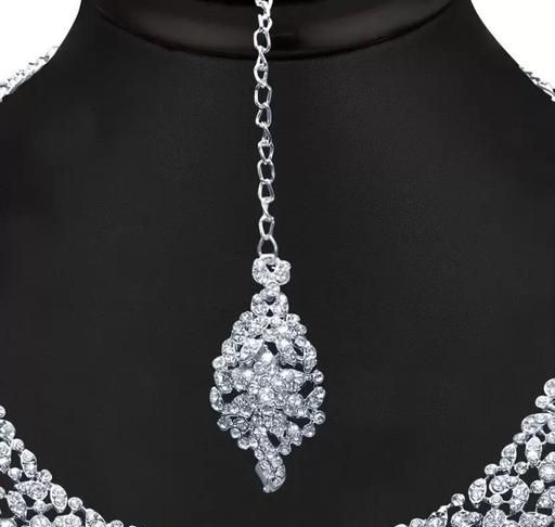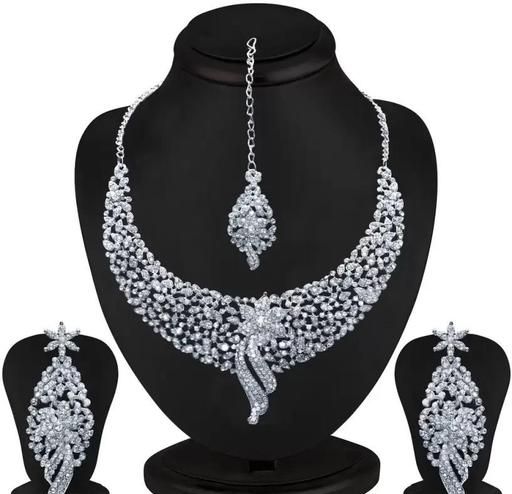 Sterling Rhodium Plated Jewellery Set With White Austrian Diamond,Jewellery set, jewellery, bridal jewellery,necklace