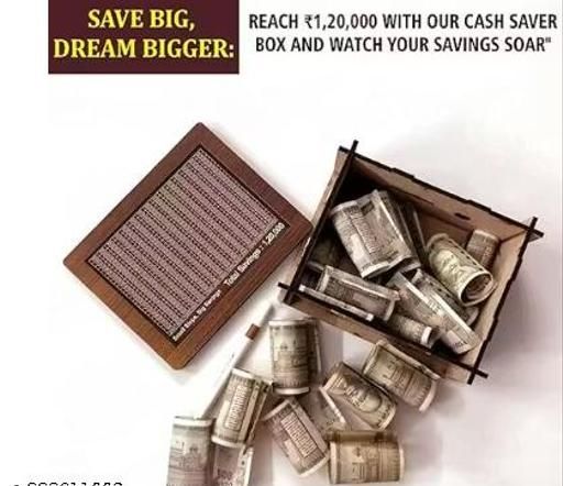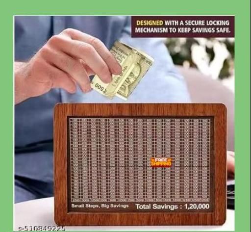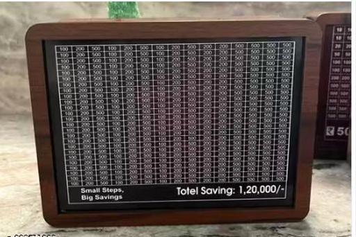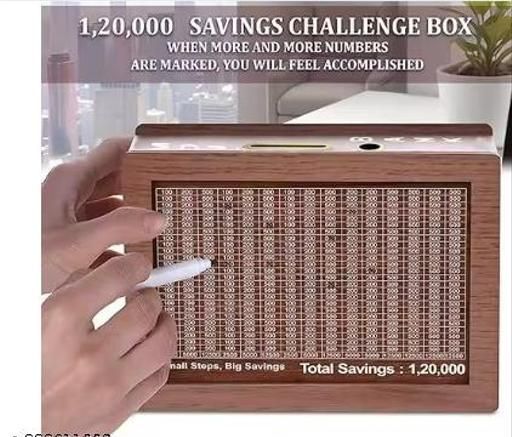 Name: 120 K Wooden Moneey Piggy Bank, Moneey Saving Boxx, Gullak with Savings Chart, 120000 Rupeess