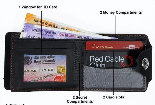 Wallet Purse for Men Gents with Card Slots - Product Overview To place all your monetary essentials safe and secure you can always count on this simple yet versatile and durable Wallet - For Men. , this wallet makes sure all your possessions obtain sturdy support while you are on the move. The compact and organized interiors of this wallet allow for an orderly segregation of your cash, cards and bills. These interiors comprise of two compartments, offering ultimate convenience and comfort while use. The smart Bi fold design of this Wallet - For Men allows you to easily slip it into your pocket while you are set to go outdoors for the day. Besides this, the wallet is also equipped with ID window slots, credit card slots. This wallet is lightweight and hence is effortlessly portable on the move. Be it a weekend get together with friends or late night dinner outdoors with family, this wallet could be the ideal pick for you.