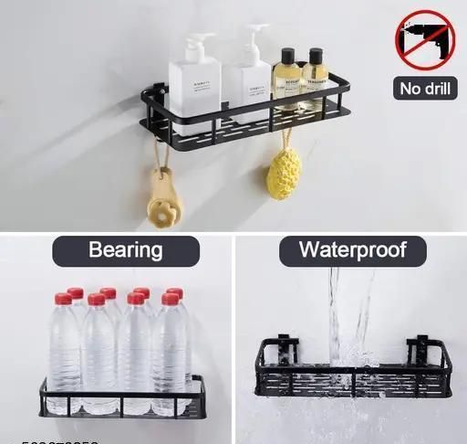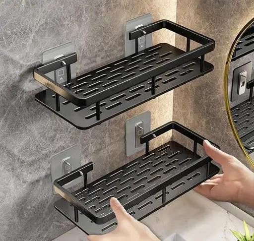 Name: PLASTIC PACK OF 2 Adhesive Sticker Multipurpose Wall Mount Bathroom Shelf and Rack for Home and Kitchen. Self-Adhesive Sticker Hooks Support Without Drilling Bathroom Organizer pack of 2 black