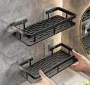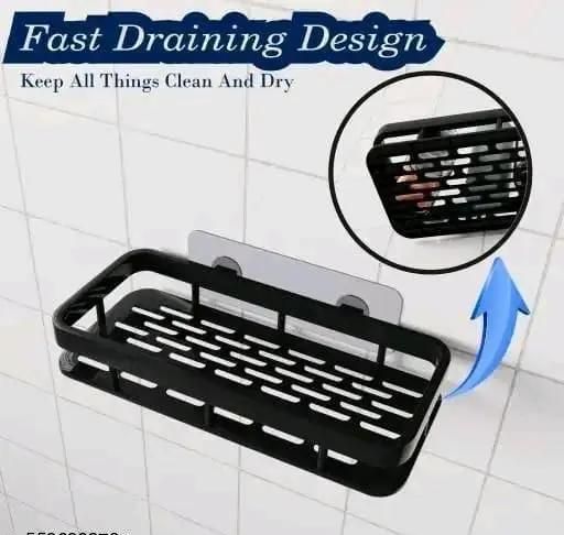 PLASTIC PACK OF 2 Adhesive Sticker Multipurpose Wall Mount Bathroom Shelf and Rack for Home and Kitchen. Self-Adhesive Sticker Hooks Support Without Drilling Bathroom Organizer pack of 2 black