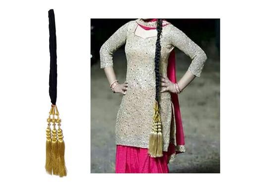 Handmade Paranda/Parandi with Golden Color Tassles & Hangings. Specially Designed for Weddings,Parties & Festivals. You can use it as Hair Extension Also Traditional Punjabi Culture Parandi Patiala Shahi Parandi/Paranda (Made In Punjab)