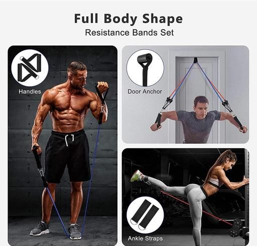 Name: DEZNA Resistance Bands Set (11pcs) Exercise Bands with Door Anchor Handles Waterproof Carry Bag Legs Ankle Straps for Resistance Training Physical Therapy Home Workouts