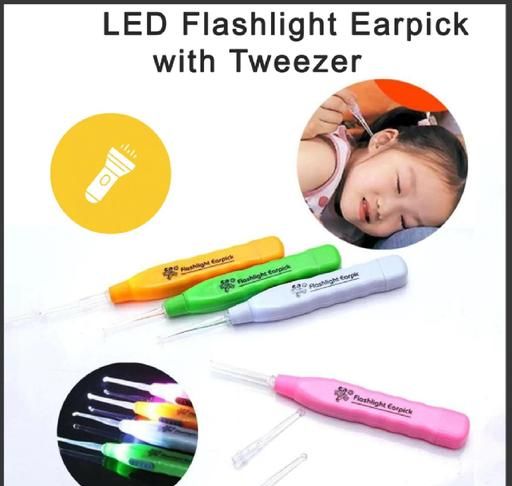 Flashlight for seeing the earhole clearly,ACCURACY: Do you feel uncomfortable picking earwax for your children or a family member because it's hard to see? We have a solution for you! Illuminate the hard to see dark areas with the built-in LED lights. Bright lighting will help you with better accuracy and precision. Also can be used as a flashlight when needed,Each ear pick tool has a built in LED flashlight to see into the ear clearly. Could also as a convenient flashlight when not in use. LED Light for a clear vision, convenient to use and ,Each tool comes with 3 end piece attachments: 2 earpick tips and 1 tweezer tip. Allow you to get to bothersome earwax deep in the ear. Batteries are included.help you a lot. Plastic ear-pick heads, strong but flexible, not easy,,LED earwax removal provide flashlight to see the ear-hole clearly, great for your kids orlover or your friends to clean ears, enjoy the time with your family to be broken, safe to your ears. Flashlight ear pick this earpick with one led flashlight helps to clean ear easily and convenientlProvides a safe and easier way to clean your families ears and remove ear wax!Cute style for babies and kids, safe and reliable earpicks for household and travel use.y,