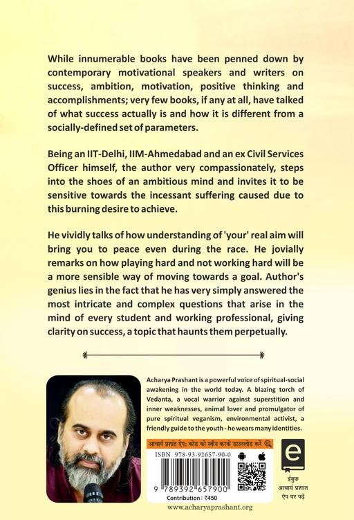 While innumerable books have been penned down by contemporary motivational speakers and writers on success, ambition, motivation, positive thinking and accomplishments; very few books, if any at all, have talked of what success actually is and how it is different from a socially-defined set of parameters. Being an IIT-Delhi, IIM-Ahmedabad and an ex Civil Services Officer himself, the author very compassionately, steps into the shoes of an ambitious mind and invites it to be sensitive towards the incessant suffering caused due to this burning desire to achieve. He vividly talks of how understanding of 'your' real aim will bring you to peace even during the race. He jovially remarks on how playing hard and not working hard will be a more sensible way of moving towards a goal. Author's genius lies in the fact that he has very simply answered the most intricate and complex questions that arise in the mind of every student and working professional, giving clarity on success, a topic that haunts them perpetually. This book is in Question and Answer style.