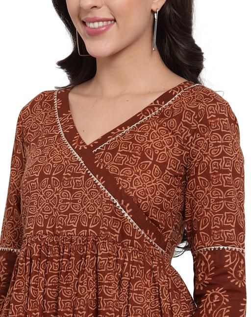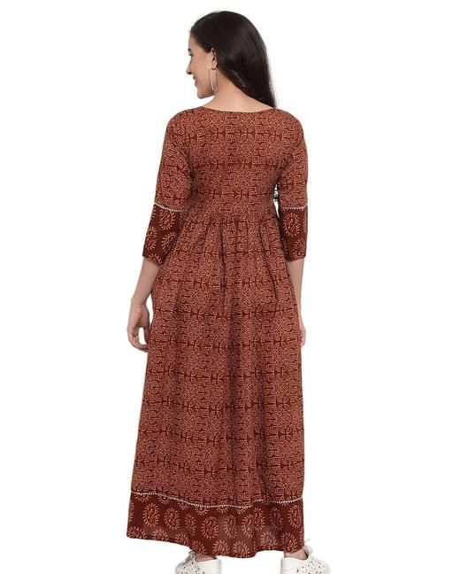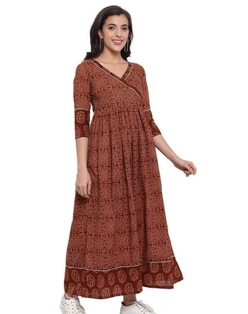 Name: Indibelle Cotton Brown Floral Print A-Line Dress