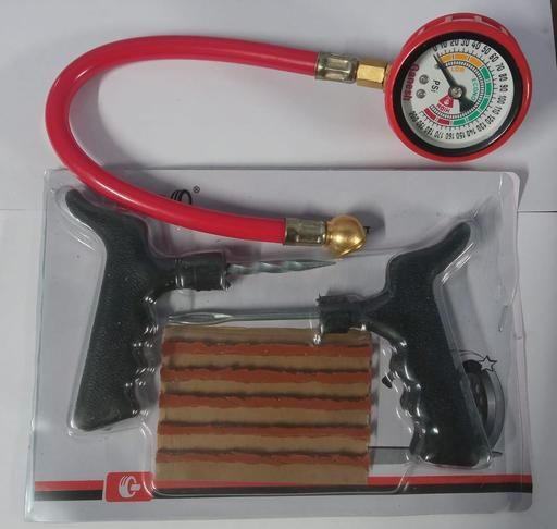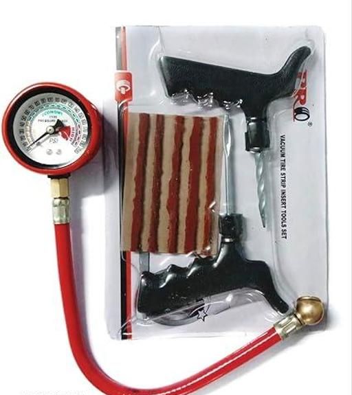 Air Pressure Gauge(200 PSI) With Tubeless tire puncture repair kit Heavy Duty. It is shock resistant and has long air hose which is very easy to use and convenient to measure pressure of tyre.