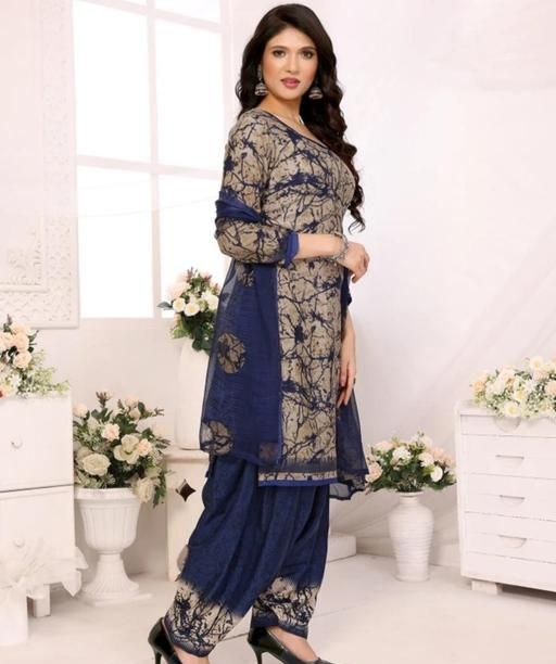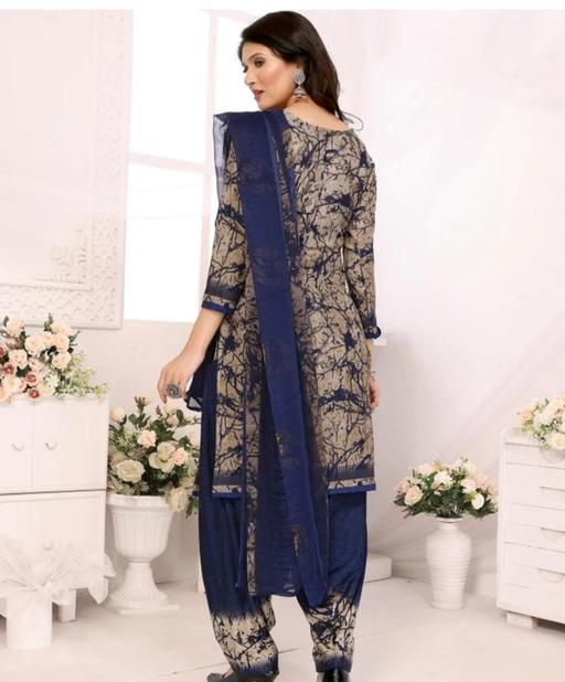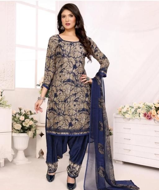 Name: Women's Beige Abstract Printed Crepe Suits & Dress Materials