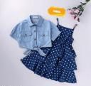 polka dot frill frock &dress with denim shirt Combo