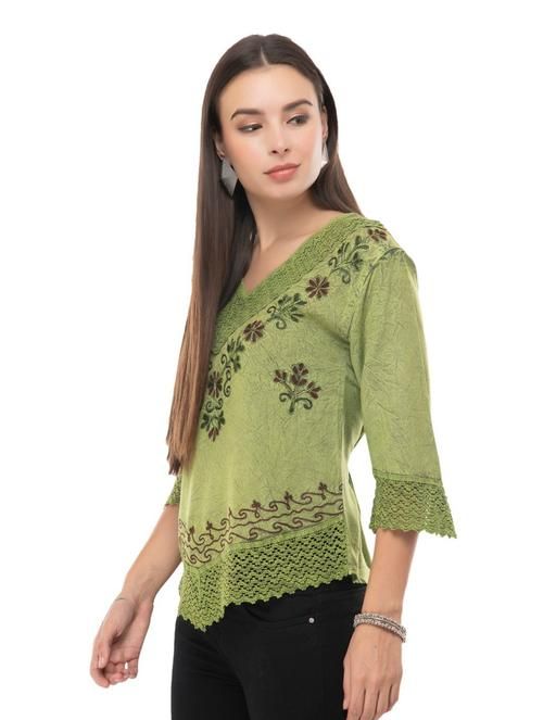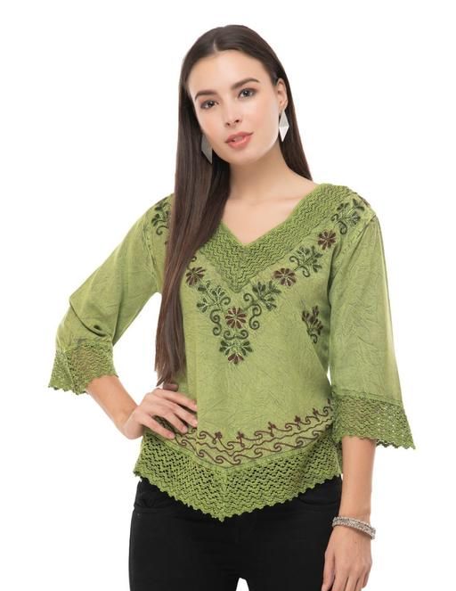 Name: SAAKAA Women's Rayon Green Embroidery Top